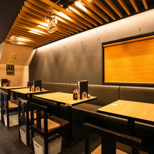 中規模のグループでも快適に過ごせるテーブル席は、落ち着いたデザインのベンチシートを完備。壁際のベンチ席はゆったり座れるため、家族連れや友人同士の食事、会社の同僚との飲み会にもぴったりです。シンプルながらも温かみのあるインテリアが心地よく、どんなシーンでも馴染む空間になっています。